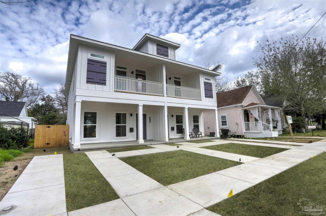Amazing opportunity to own a brand new space less than 5 minutes to the Downtown Pensacola core. Live on one side and lease the other! This property offers all the conveniences and luxuries you would expect in a new home. Each side offers the same amenities designed to offer maximum rental potential. Enter through the deep front porch to find 9 foot ceilings throughout the entire home, Wood look luxury vinyl plank floors in all the rooms (no carpet), lots of large windows gathering natural light, and a light and bright color pallet. The home offers 3 bedrooms each with an attached bath plus a home office! The Kitchen is decked out with 42 inch upper cabinets, a built-in refrigerator, 5 burner GAS range, all stainless steel GE appliances and Dolomite (stone) counter tops. In addition there is a large panty. The first floor is laid out with one bedroom, one full bath, plus living areas. The second floor arrangement includes 2 bedrooms, 2 full baths, laundry room and office. All the bedrooms include walk-in closets! The primary bedroom is offered with a cozy balcony, and gracious bathroom. The primary bath boasts a large double vanity with dressing area, custom walk-in shower with frameless glass door and separate water closet. The tankless gas water heater provides endless hot water while offering energy efficiency. The relaxing rear yard is fully fenced and has a spacious patio. The entire yard is irrigated to help keep your yard looking great year round! This new home is not to be missed, call today and be sure to ask about the Seller Incentives to buy down your interest rate.